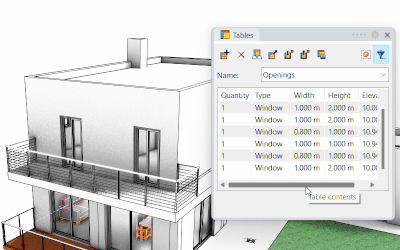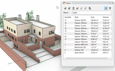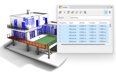 Show quantity take-off reports in real-time of VisualARQ objects and Rhino geometry in a Table Report panel.