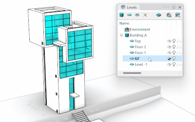 Since buildings have a boundary, levels can be hidden and isolated individually.