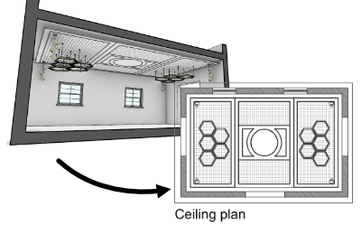 Insert 2D ceiling plans in the model space. These plans are linked to the 3D model and can update at any time.