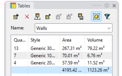 Filter objects displayed in the table report panel by style, building, level, or layer.