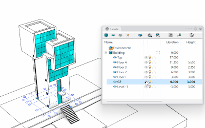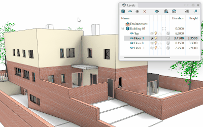 Objects can be attached to levels. When editing a level elevation, all objects contained in that level update their position or height.