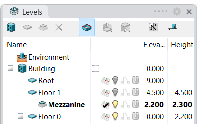 Option to create multiple levels (or sub-levels) at once, with a specific pattern for names, heights between levels, and other default settings.