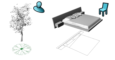 VisualARQ 对象根据是否在平面图中显示呈现不同的 3D 和 2D 表示。
